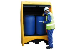 Equipé d'un poste de soutirage, ce bac de rétention permet de stocker des substances inflammables et polluants et de transvaser un produit tout en sécurité grâce à la présence d'une surface pour soutirer le produit .
